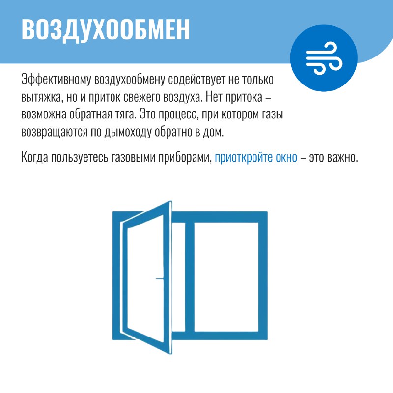 Нарушение воздухообмена может привести к скоплению продуктов сгорания, в том числе угарного газа, представляющего серьезную угрозу для жизни и здоровья.
